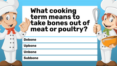 In this fun trivia quiz we're going to ask questions like "Red Delicious and Golden Delicious are varieties of which fruit?" and "What cooking term means to take bones out of meat or poultry?".