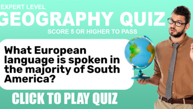 4/10 is what people on average are scoring in this Geography quiz so far. Are you ready to answer questions like "What European language is spoken in the majority of South America?" and "The Carolina Hurricanes are the NHL franchise based in which US city?"