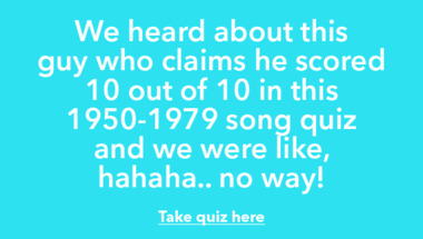 6/10 is what people on average are scoring in this trivia quiz so far. Are you ready to answer questions like "Elvis Presley sang which of these songs in the 1950s?" and "The Archies sang which of these songs in the 1970s?"