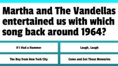 4/10 is the score to beat in this 1960s Songs quiz to put yourself over the average quiz taker. But you're probably going to be able to answer questions "Nancy Sinatra entertained us with which song back around 1967?" and "Mary Wells entertained us with which song back around 1965?" easy!