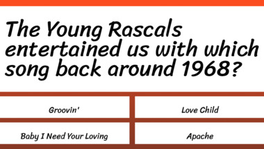 In this fun 1960s Songs quiz we're going to ask questions like "Bobby Darin entertained us with which song back around 1960?" and "The Young Rascals entertained us with which song back around 1968?".