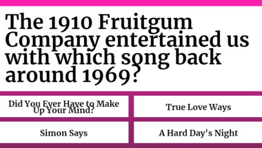 Look forward to questions like "The Monkees entertained us with which song back around 1967?" and "The 1910 Fruitgum Company entertained us with which song back around 1969?"