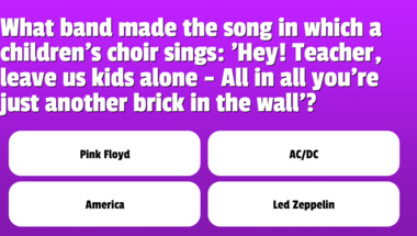 In this fun trivia quiz we're going to ask questions like "What colour did Elvis dye his hair?" and "What band made the song in which a children's choir sings: 'Hey! Teacher, leave us ki..".