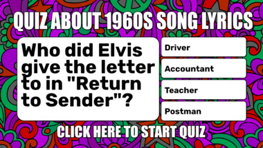 6/10 is the score to beat in this 1960s Song Lyrics quiz to put yourself over the average quiz taker. But you're probably going to be able to answer questions "Who did Elvis give the letter to in "Return to Sender"?" and "What line comes after "We gotta get out of this place" in the Animals song?" easy!