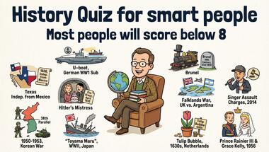 7/10 is the score to beat in this History 29-03-2025 quiz to put yourself over the average quiz taker. But you're probably going to be able to answer questions "Which term was used to describe German WW1 submarines?" and "The military ship 'Toyama Maru' belonged to which country in World War II?" easy!