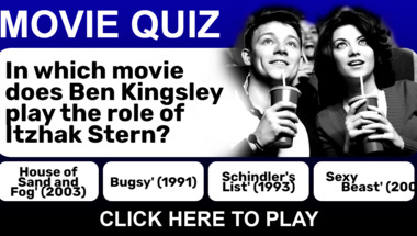 4/10 is what people on average are scoring in this trivia quiz so far. Are you ready to answer questions like ""An Adventure 65 Million Years In The Making." is the tagline from which 1990's block.." and "In which movie does Ben Kingsley play the role of Itzhak Stern?"