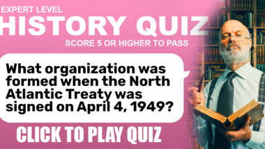 4/10 is what people on average are scoring in this trivia quiz so far. Are you ready to answer questions like "What organization was formed when the North Atlantic Treaty was signed on April 4, 19.." and "What sparked the 1992 Los Angeles Riots?"