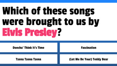 3/10 is what people on average are scoring in this 1960s Songs quiz so far. Are you ready to answer questions like "Barbara George entertained us with which song back around 1963?" and "Elvis Presley entertained us with which song back around 1960?"
