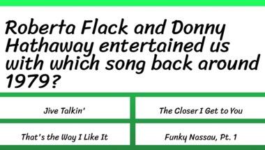 In this fun trivia quiz we're going to ask questions like "Donna Summer entertained us with which song back around 1977?" and "Roberta Flack and Donny Hathaway entertained us with which song back around 1979?".