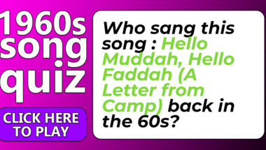 In this fun 1960s Songs quiz we're going to ask questions like "Who sang this song : "Sherry" back in the 60s?" and "Who sang this song : "Hello Muddah, Hello Faddah (A Letter from Camp)" back in the 60..".