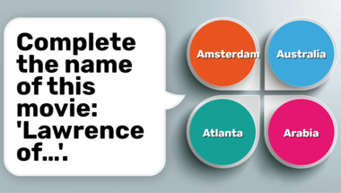 In this fun trivia quiz we're going to ask questions like "Complete the name of this movie: 'Lawrence of…'." and "Which type of dance is done with loud, metal-soled shoes?".