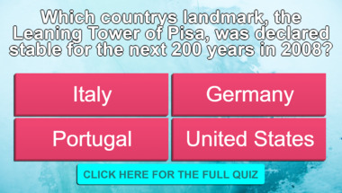 If you can answer "What language is spoken in France?" and maybe even "Which country's landmark, the Leaning Tower of Pisa, was declared stable for the next.." there is a good chance that you're going to beat the average score of 6/10 in this trivia quiz