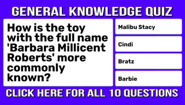 If you can answer "How is the toy with the full name 'Barbara Millicent Roberts' more commonly known?" and maybe even "90 Degrees is known as what?" there is a good chance that you're going to beat the average score of 6/10 in this trivia quiz