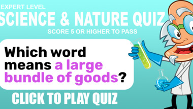 In this fun Science quiz we're going to ask questions like "Which word means "a large bundle of goods"?" and "What type of molecule is CH3OH?".