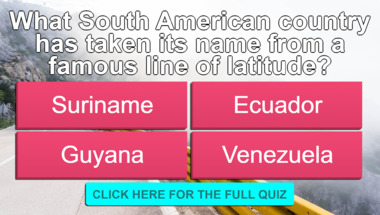 6/10 is the score to beat in this trivia quiz to put yourself over the average quiz taker. But you're probably going to be able to answer questions "Which of these regions has the driest climate?" and "What South American country has taken its name from a famous line of latitude?" easy!