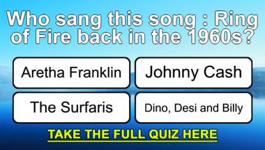 7/10 is what people on average are scoring in this trivia quiz so far. Are you ready to answer questions like "Who sang this song : "Are You Lonesome Tonight?" back in the 1960s?" and "Who sang this song : "Surfin' Safari" back in the 1960s?"