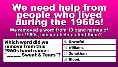 If you can answer "Which word did we remove from this 1960s band name : "Simon & ____"?" and maybe even "Which word did we remove from this 1960s band name : "____ Sweat & Tears"?" there is a good chance that you're going to beat the average score of 6/10 in this 1960s bands with a missing word quiz