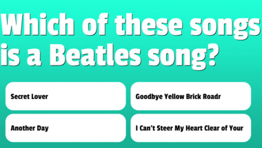 In this fun trivia quiz we're going to ask questions like "Which of these songs is a Beatles song?" and "Which of these songs is a Beatles song?".