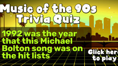 6/10 is the score to beat in this 1990s Hits quiz to put yourself over the average quiz taker. But you're probably going to be able to answer questions "You must remember this hit from Elton John which was heard all over the place in 1995.." and "1992 was the year that this Michael Bolton song was on the hit lists" easy!