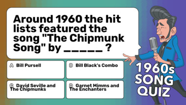 In this fun trivia quiz we're going to ask questions like "Around 1960 the hit lists featured the song "The Chipmunk Song" by _____ ?" and "Around 1961 the hit lists featured the song "Georgia On My Mind" by _____ ?".
