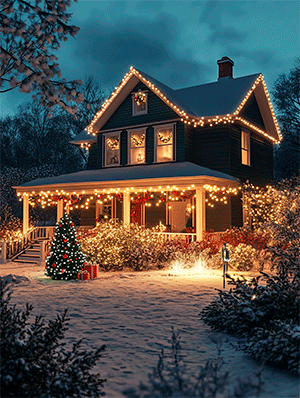 What do Americans often use to decorate the outside of their homes during Christmas?